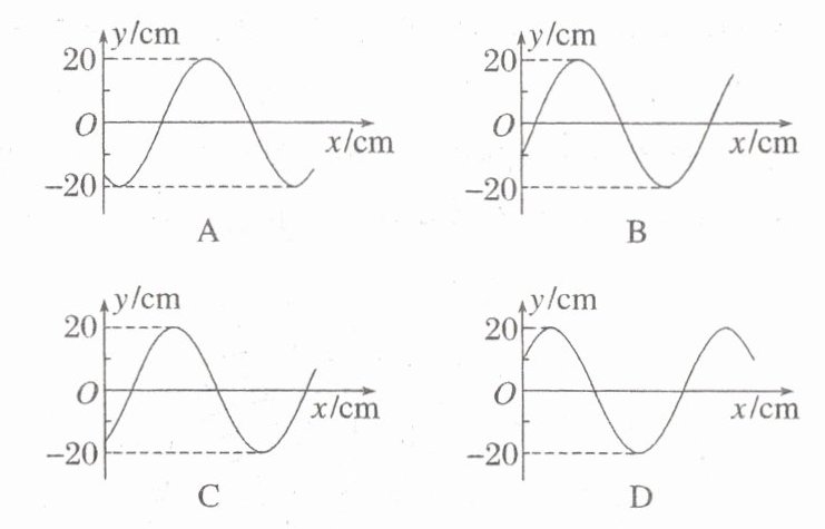 AC [由振动图像可知,周期为$T = 12s$,振幅$A = 20cm$,设原点处的质点的振动方程为$y = A\sin(\frac{2\pi}{T}t + \varphi)$将$(0,10)$代入,有$10 = 20\sin\varphi$,解得$\varphi = \frac{\pi}{6}$在$t = 7s$时刻$y_T = 20\sin(\frac{2\pi}{12} × 7 + \frac{\pi}{6})cm = -10\sqrt{3}cm$由振动图像可知在$t = 7s$时刻质点在y轴负半轴向下振动,根据“同侧法”可判断若波向右传播,则波形如C所示;若波向左传播,则波形如A所示,故选A、C。]