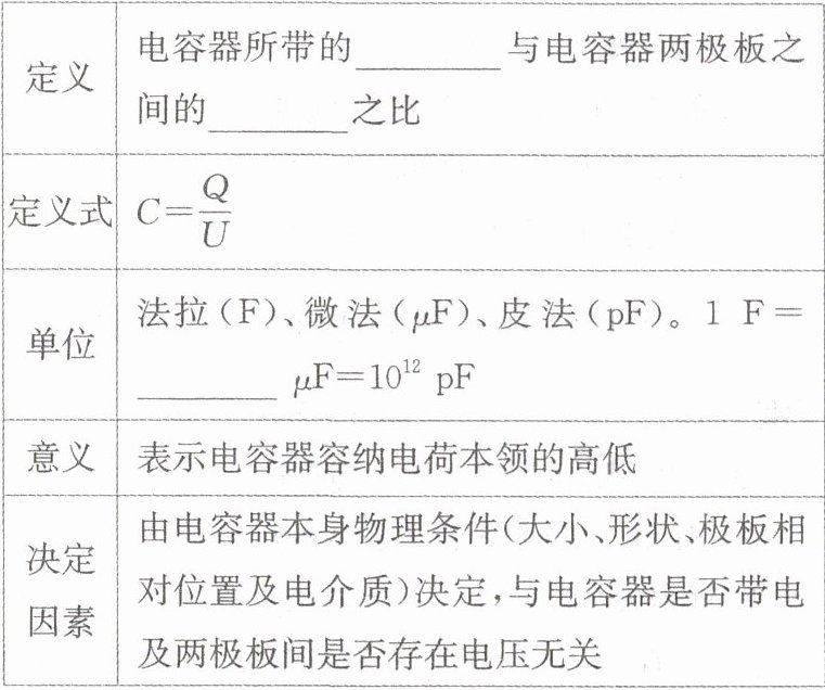 2. 电容器的电容与电容器所带电荷量成正比,与电压成反比。()