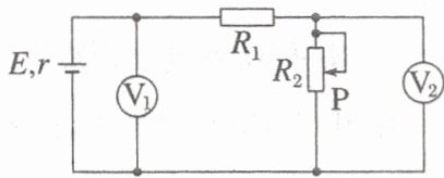 如图所示,理想电压表$V_{1}$示数为$U_{1}$,理想电压表$V_{2}$示数为$U_{2}$,电路中电流为$I$。