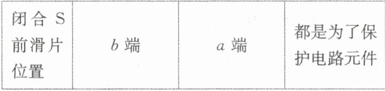 | 闭合$S$前滑片位置 | $b$端 | $a$端 | 都是为了保护电路元件 |