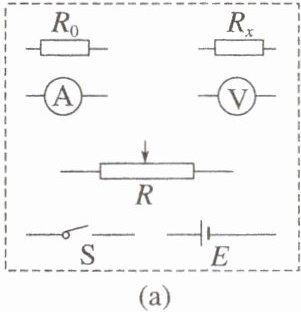 (1) 要求通过$ R_x $的电流可在 0~5 mA 范围内连续可调,将图(a)所示的器材符号连线,画出实验电路的原理图;