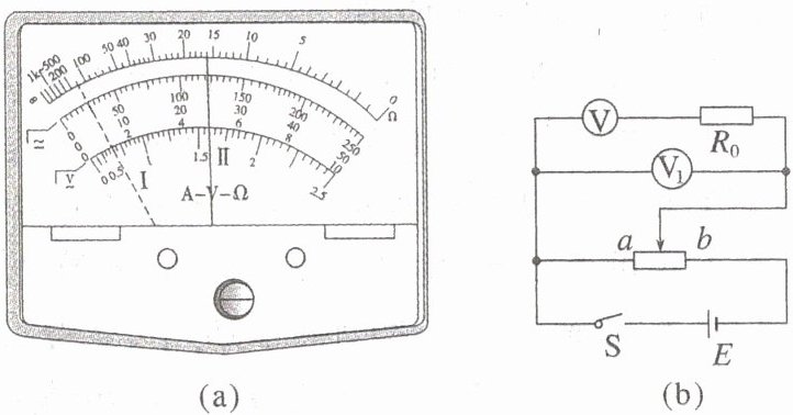 (填“$ a $”或“$ b $”)端。(3)闭合开关 $ S $,滑动变阻器滑片滑到某一位置时,电压表 $ V_1 $、待测电压表的示数分别为 $ U_1 $、$ U $,则待测电压表内阻 $ R_{V} = $