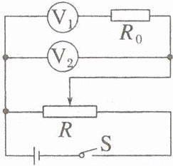 (1)基本原理:定值电阻 $ R_0 $ 两端的电压 $ U_0 = U_2 - U_1 $,流过电压表 $ V_1 $ 的电流 $ I_1 = \frac{U_2 - U_1}{R_0} $。