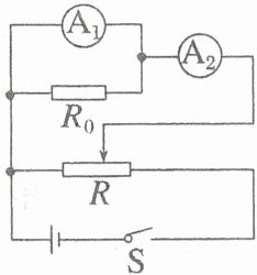 (1)基本原理:流过定值电阻 $ R_0 $ 的电流 $ I_0 = I_2 - I_1 $,电流表 $ A_1 $ 两端的电压 $ U_1 = (I_2 - I_1)R_0 $。