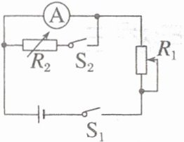 ①先断开 $ S_2 $,再闭合 $ S_1 $,将 $ R_1 $ 由最大阻值逐渐调小,使电流表读数等于其量程 $ I_{m} $;