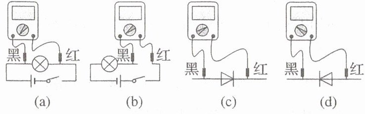 使用多用电表电阻挡检测元件时,先将各元件与电源断开,再将元件接入红、黑表笔间: