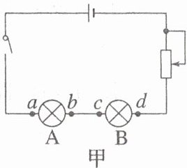 【例3】用多用电表的直流电压挡和电阻挡检查电路故障并测量小灯泡电阻。如图甲所示,4节干电池串联,小灯泡$A$和$B$的规格均为“$5\ V,0.5\ A$”,合上开关,无论怎样移动滑动变阻器的滑片,$A$和$B$都不亮。