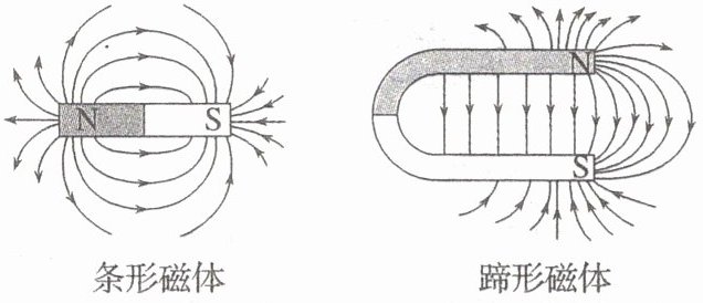 (1) 条形磁体和蹄形磁体的磁场(如图所示)