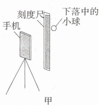 (2025·宁夏固原市开学考)小明同学在家自主开展实验探究。用手机拍摄物体自由下落的视频,得到分帧图片,利用图片中小球的位置来测量当地的重力加速度,实验装置如图甲所示。