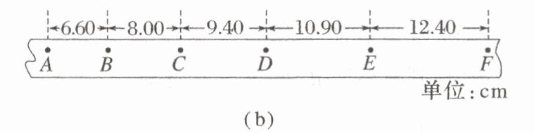 (1)根据纸带的数据可得$\Delta x_{AD}=x_{AB}+x_{BC}+x_{CD}=6.60cm + 8.00cm + 9.40cm = 24.00cm$,平均速度$\bar{v}_{AD}=\frac{\Delta x_{AD}}{3T}=80.0cm/s$