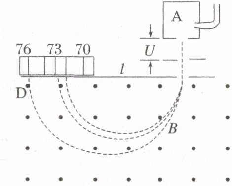 因为$l = 2r$,所以$l = \frac{2}{B}\sqrt{\frac{2mU}{q}}$,等式两边同时平方可得$l^{2}=\frac{4}{B^{2}}\cdot\frac{2mU}{q}$,进一步变形可得$m = \frac{qB^{2}l^{2}}{8U}$;