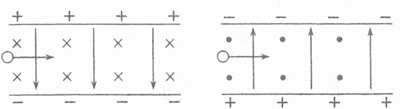 (1)平行板中电场强度$E$和磁感应强度$B$互相垂直。(如图)