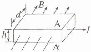 (1)定义:高为$h$、宽为$d$的导体(自由电荷是电子或正电荷)置于匀强磁场$B$中,当电流通过导体时,在导体的和之间产生电势差,这种现象称为霍尔效应,此电压称为霍尔电压。