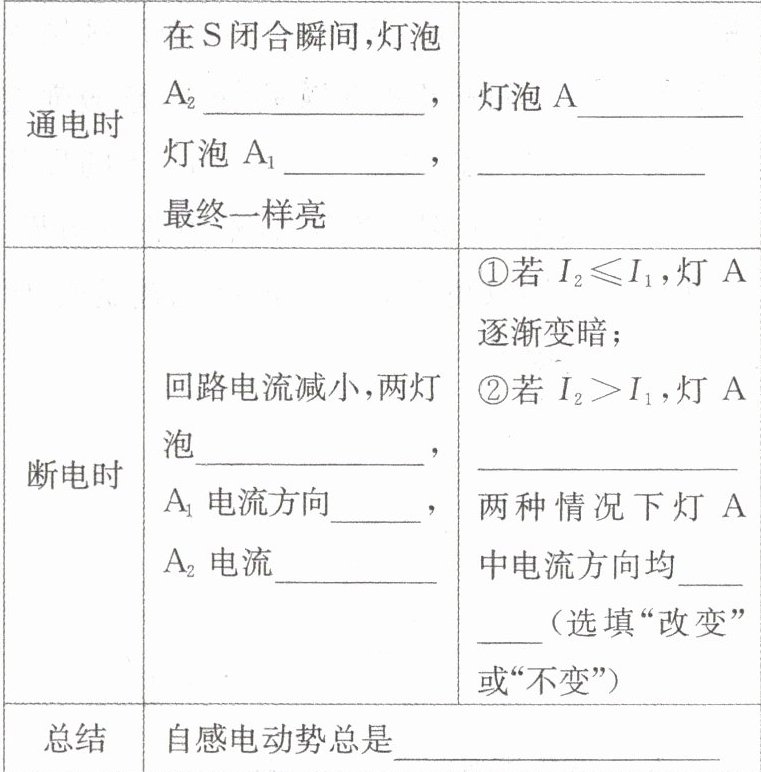 1. 概念:当一个线圈中的电流变化时,它所产生的变化的磁场在线圈本身激发出 ,这种现象称为自感,由于自感而产生的感应电动势叫作自感电动势。