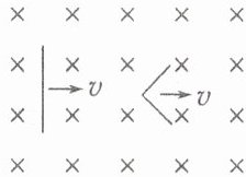 如图所示,空间有一匀强磁场,一直金属棒与磁感应强度方向垂直,当它以速度 $ v $ 沿与棒和磁感应强度都垂直的方向运动时,棒两端的感应电动势大小为 $ \varepsilon $,将此棒弯成两段长度相等且相互垂直的折弯,置于与磁感应强度相垂直的平面内,当它沿两段折线夹角平分线的方向以速度 $ v $ 运动时,棒两端的感应电动势大小为 $ \varepsilon' $,则 $ \frac{\varepsilon'}{\varepsilon} $ 等于(