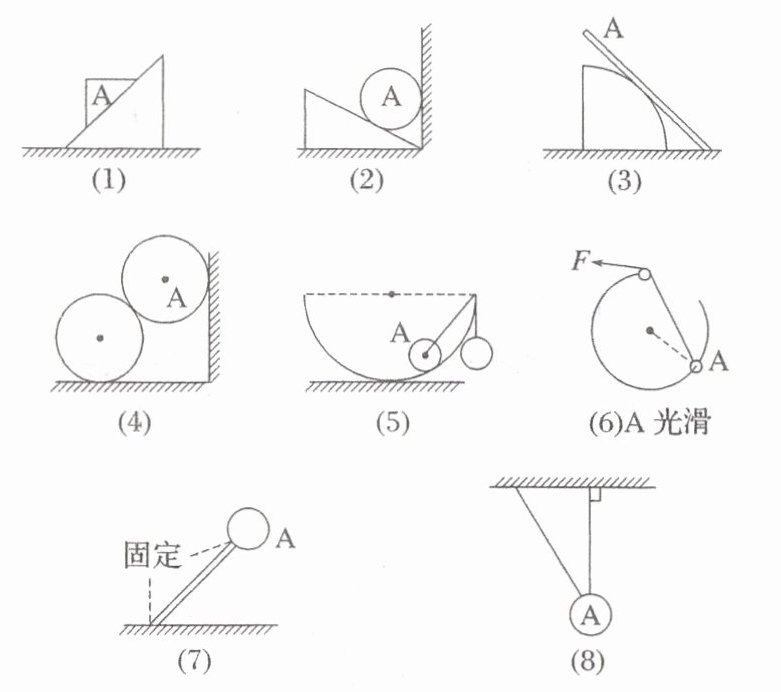图中各物体均处于静止状态。画出图中物体$A$所受的弹力。