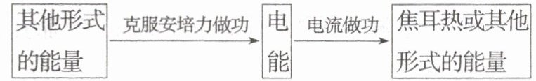 电磁感应中能量转化为:其他形式能量→克服安培力做功→电能→电流做功→焦耳热或其他形式能量,且克服安培力做功等于产生的电能。