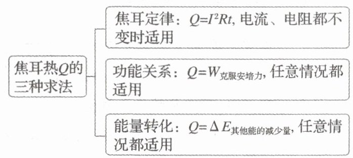 上述三种方法分别为焦耳定律(电流电阻恒定时)、功能关系(克服安培力做功)、能量转化(其他能减少量)求焦耳热。