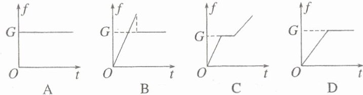 把一重力为G的物体,用一个水平的推力F=kt(k为大于0的恒量,t为时间)压在竖直的足够高的平整墙面上(如图),从t=0开始,物体所受的摩擦力f随t的变化关系是(