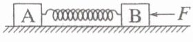 如图所示,水平地面上有重力均为40N的A、B两木块,它们之间夹有被压缩了2.0cm的水平轻质弹簧,已知弹簧的劲度系数k=400N/m,两木块与水平地面间的动摩擦因数均为0.25,系统处于静止状态。现用F=10N的水平力推木块B,假设最大静摩擦力等于滑动摩擦力,则力F作用后(