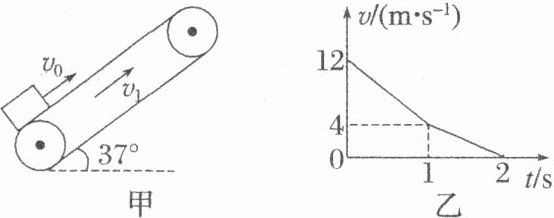 如图甲所示,倾斜的传送带正以恒定速率v₁沿顺时针方向转动,传送带的倾角为37°,一煤块以初速度v₀沿传送带向上从传送带的底端冲上传送带,其运动的v-t图像如图乙所示,煤块运动到传送带顶端时速度恰好为零,sin37°=0.6,cos37°=0.8,g取10m/s²,则(