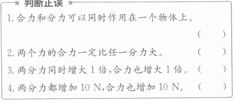 3. 两分力同时增大1倍,合力也增大1倍。()