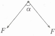 矫正牙齿时,可用牵引线对牙施加力的作用。若某颗牙齿受到牵引线的两个作用力大小均为$F$,夹角为$\alpha$(如图),则该牙所受两牵引力的合力大小为(