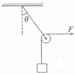 3. (2024·河南省许平汝名校期末)如图所示,橡皮筋一端连接在天花板上,另一端连接在滑轮上,与竖直方向夹角为 $ \theta $;绕过滑轮的轻绳一端悬挂一重物,另一端施加水平力 $ F $,重物保持静止,现保持 $ F $ 大小不变,使其在竖直面内沿逆时针方向缓慢转过 $ 60^{\circ} $,不计滑轮质量及一切摩擦,橡皮筋始终在弹性限度内,此过程中,下列说法正确的是(