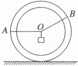 12. (2025·河南郑州市开学考)一竖直放置的轻质圆环静止于水平面上,质量为 $ m $ 的物体用轻绳系于圆环边缘上的 $ A $、$ B $ 两点,结点恰位于圆环的圆心 $ O $ 点。已知物体静止时,$ AO $ 绳水平,$ BO $ 绳与 $ AO $ 绳的夹角为 $ 150^{\circ} $,重力加速度为 $ g $。现使圆环沿顺时针方向缓慢滚动,在 $ AO $ 绳由水平转动至竖直的过程中(