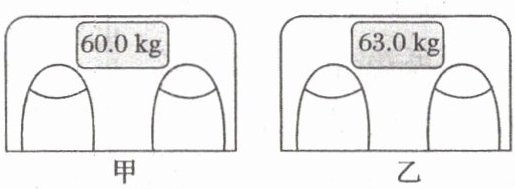 5. (八省联考·云南·6)某同学站在水平放置于电梯内的电子秤上,电梯运行前电子秤的示数如图甲所示。电梯竖直上升过程中,某时刻电子秤的示数如图乙所示,则该时刻电梯(重力加速度 $ g $ 取 $ 10m/s^{2} $)(