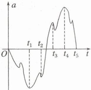8. (2025·江西省智学联盟体联考)智能手机有许多的传感器,如加速度传感器。小明用手平托着手机,迅速向下运动,然后停止。以竖直向上为正方向,手机记录了手机竖直方向的加速度 $ a $ 随时间 $ t $ 变化的图像,如图所示。则下列判断正确的是(