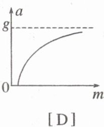 4.D [当m质量较小时,由于P与桌面存在摩擦,a=0;当m趋于无穷大时,加速度大小趋近于g。故选D。]