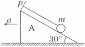 7. (2025·山东泰安市模拟)如图所示,细线的一端固定在倾角为 $ 30° $ 的光滑楔形滑块 $ A $ 的顶端 $ P $ 处,细线的另一端拴一质量为 $ m $ 的小球,静止时细线与斜面平行。已知重力加速度为 $ g $。使滑块以加速度 $ a = 2g $ 水平向左加速运动,小球与滑块相对静止,则下列说法中正确的是(