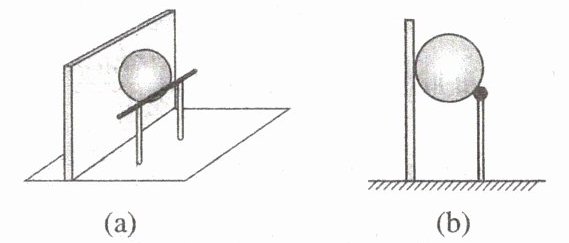 5. (2024·贵州卷·4)如图(a),一质量为 $m$ 的匀质球置于固定钢质支架的水平横杆和竖直墙之间,并处于静止状态,其中一个视图如图(b)所示。测得球与横杆接触点到墙面的距离为球半径的 $1.8$ 倍,已知重力加速度大小为 $g$,不计所有摩擦,则球对横杆的压力大小为(