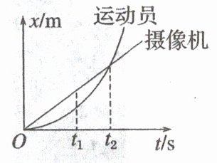 8. (2024·陕西榆林市阶段考)在体育比赛中,摄像机让犯规无处遁形。在冬季奥运会的一场速度滑冰比赛中,摄像机和某运动员的位移 $x$ 随时间 $t$ 的变化图像如图所示,下列说法中正确的是(
