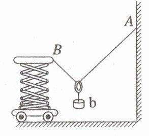 6. 某建筑工地用一可以移动的升降机来吊装重物,如图所示,轻绳穿过下方吊着重物的光滑圆环,$A$、$B$ 两点分别固定在建筑和升降机上,下列说法正确的是(