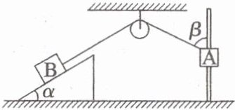 7. (多选)(2024·湖南师范大学附属中学期末)如图所示,不可伸长的轻绳平行于斜面,一端与质量为m的物块B相连,B在光滑斜面上。轻绳另一端跨过滑轮与质量为M的物块A连接。A在外力作用下沿竖直杆以速度v₁向下匀速运动,物块B始终沿斜面运动且斜面始终静止,当轻绳与杆的夹角为β时,物块B的速度大小为v₂。斜面倾角为α,重力加速度为g,下列说法正确的是 (