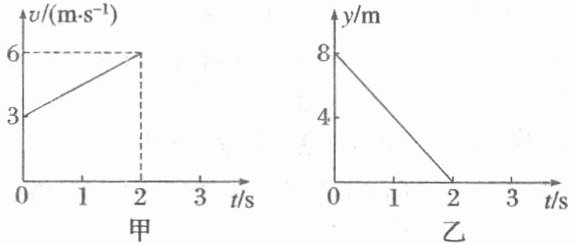 6. (2024·湖北省模拟)有一个质量为4kg的质点在xOy平面内运动,在x方向的速度时间图像和y方向的位移时间图像分别如图甲、乙所示。下列说法正确的是 (