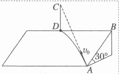 11. (15 分)如图,BD 为斜面顶端的水平边沿,子弹从斜面最低点 A 处以一定速度射出,经过一段时间恰好水平击中 D 点,不计空气阻力,已知斜面的倾角为 $30°$,重力加速度为 g,AB 长度 $x_{AB} = a$,BD 长度 $x_{BD} = \dfrac{\sqrt{13}}{2}a$。($v_0$ 未知)