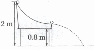 8. 某科技比赛中,参赛者设计了一个轨道模型,如图所示。模型放到 0.8 m 高的水平桌子上,最高点距离水平地面 2 m,右端出口水平。现让小球在最高点由静止释放,忽略阻力作用,为使小球飞得最远,右端出口距离桌面的高度应设计为(