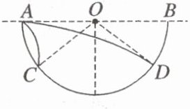 9. (2025·福建厦门市段考)固定的半圆形竖直轨道如图所示,AB 为水平直径,O 为圆心,质量不等的甲、乙两个小球同时从 A 点水平抛出,速度分别为 $v_1$、$v_2$,经时间 $t_1$、$t_2$ 分别落在等高的 C、D 两点,OC、OD 与竖直方向的夹角均为 $53°$ ($\sin 53° = 0.8$,$\cos 53° = 0.6$),不计空气阻力,下列说法正确的是(