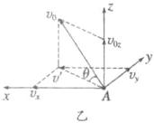 解析 根据运动情景,画出如图甲所示的立体图,以射出点为原点,建立三维直角坐标系,如图乙所示。