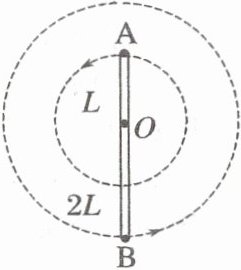 5. (2025·湖北省新高考协作体期中)如图所示,轻杆长$3L$,在杆两端分别固定质量均为$m$的球$A$和$B$(均可视为质点),光滑水平转轴穿过杆上距球$A$为$L$处的$O$点,外界给系统一定能量后,杆和球在竖直平面内转动,球$B$运动到最高点时,杆对球$B$恰好无作用力。忽略空气阻力,重力加速度为$g$,则球$B$在最高点时(