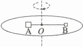 9. (2024·江苏扬州市江都中学检测)如图所示,在水平圆盘上,沿半径方向放置物体$A$和$B$,$m_A = 4kg$,$m_B = 1kg$,它们分居在圆心两侧,与圆心距离为$r_A = 0.1m$,$r_B = 0.2m$,中间用水平细线相连,$A$、$B$与圆盘间的动摩擦因数均为$\mu = 0.2$,设最大静摩擦力等于滑动摩擦力,若圆盘从静止开始绕中心转轴非常缓慢地加速转动,重力加速度$g$取$10m/s^2$,以下说法正确的是(
