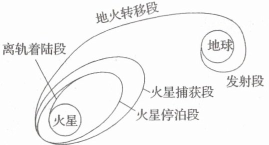 2. (2024·江苏常熟市模拟)天问一号火星探测器搭乘长征五号遥四运载火箭成功发射意味着中国航天开启了走向深空的新旅程。由着陆巡视器和环绕器组成的天问一号经过如图所示的发射、地火转移、火星捕获、火星停泊和离轨着陆等阶段,则(