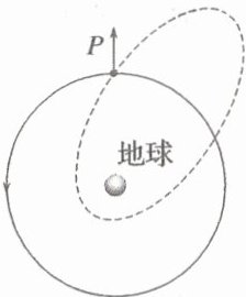 3. (2024·湖北卷·4)太空碎片会对航天器带来危害。设空间站在地球附近沿逆时针方向做匀速圆周运动,如图中实线所示。为了避开碎片,空间站在P点向图中箭头所指径向方向极短时间喷射气体,使空间站获得一定的反冲速度,从而实现变轨。变轨后的轨道如图中虚线所示,其半长轴大于原轨道半径。则(