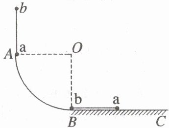 4. (2025·山东东营市开学考)如图所示,有一光滑轨道ABC,AB部分为半径为R的$\frac{1}{4}$圆弧,BC部分水平,质量均为m的小球a、b固定在竖直轻杆的两端,轻杆长为R,小球可视为质点,开始时a球处于圆弧上端A点,由静止开始释放小球和轻杆,使其沿光滑弧面下滑,重力加速度为g,下列说法正确的是(