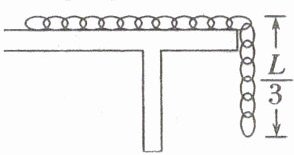6. (多选)如图所示,有一条柔软的质量为m、长为L的均匀链条,开始时链条的$\frac{2L}{3}$长在水平桌面上,而$\frac{L}{3}$长垂于桌外,用外力使链条静止。不计一切摩擦,重力加速度为g,桌子足够高,桌角右上方有一光滑的约束挡板(图中未画出)以保证链条不会飞起。下列说法中正确的是(
