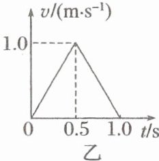 2. (多选)(2024·贵州省名校协作体三模)如图甲所示,质量为 $0.1\ kg$ 的滑块(可视为质点)在内壁光滑、固定的水平筒内压缩弹簧,弹簧原长小于筒长,且弹簧与滑块不拴接。滑块由静止释放,离开筒后立即滑上静止于水平面上的木板左端,开始计时,此后木板的 $v - t$ 图像如图乙所示。已知木板质量也为 $0.1\ kg$,木板的长度为 $1\ m$,滑块与木板间的动摩擦因数为 $0.6$,最终滑块恰好没有离开木板。忽略空气阻力,重力加速度大小取 $10\ m/s^2$。则(
