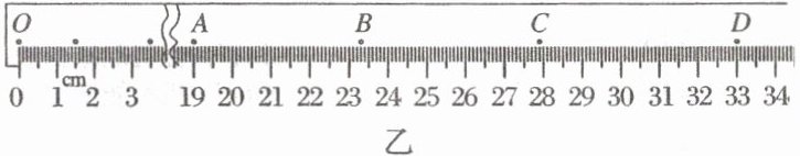 (2)由题图乙可知$OC$之间的距离为$s_{OC}=27.90 cm$,因此重力势能的减少量为$\vert\Delta E_p\vert =mgs_{OC}=0.2 × 9.80 × 0.2790 J \approx 0.547 J$